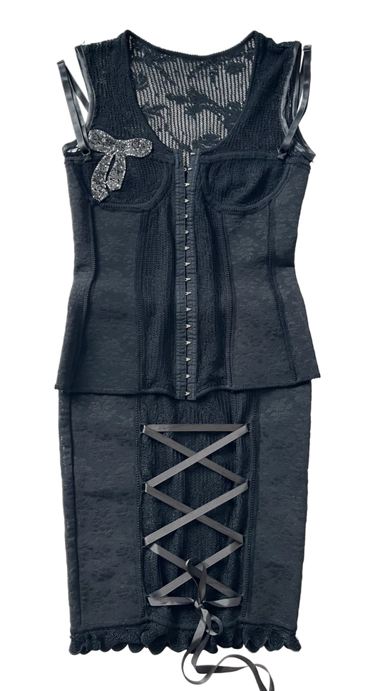 John Galliano ~ 2003 Knit Corset Skirt Set