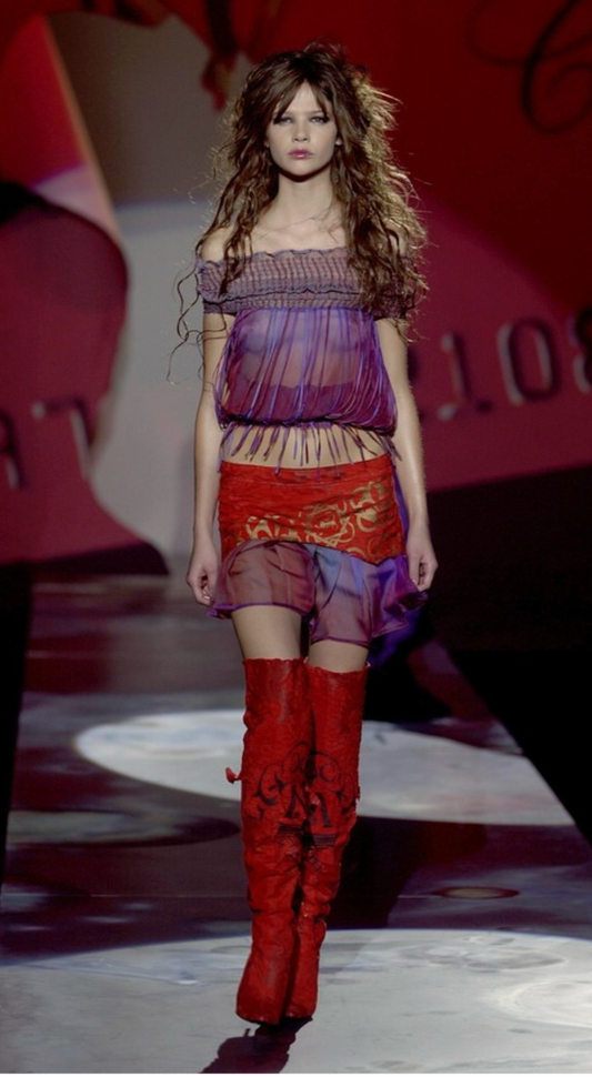 Voyage ~ Runway FW 2002 Leather Silk Mini Skirt