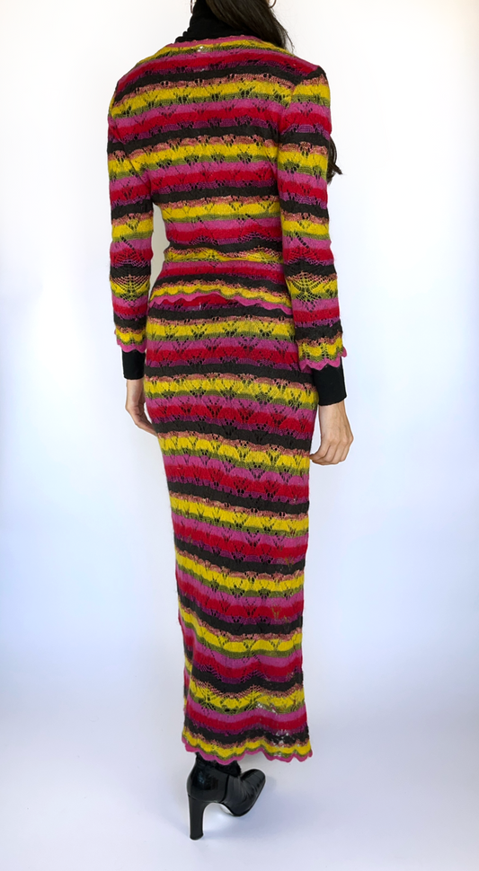 Christian Lacroix ~ 2000s Knitted Multicolor Striped Mohair Co-ord Set