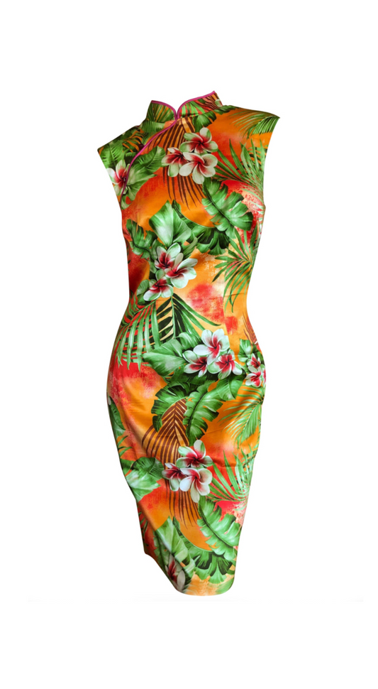 Dolce & Gabbana ~ 2000s Tropical Satin Cheongsam Dress