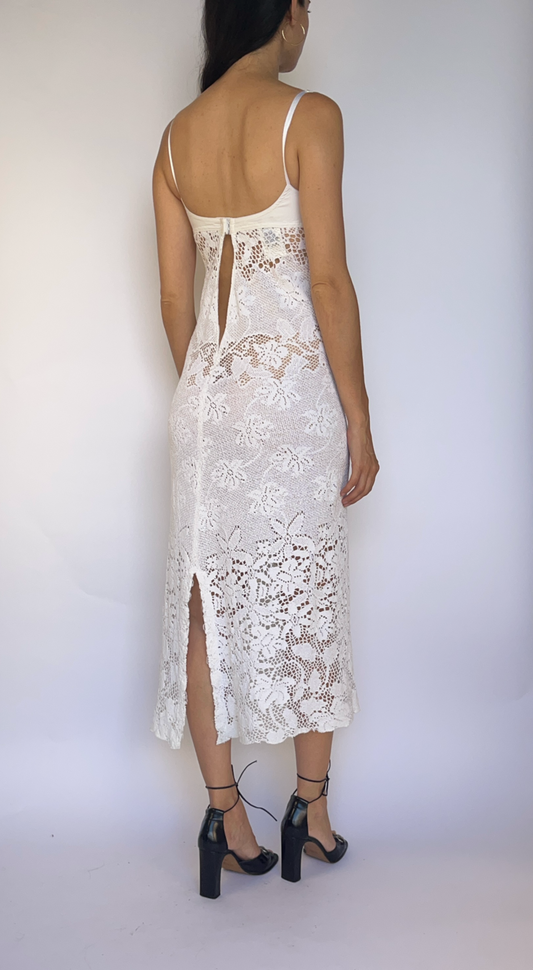 Dolce & Gabbana 2000s White Floral Bustier Crochet Dress