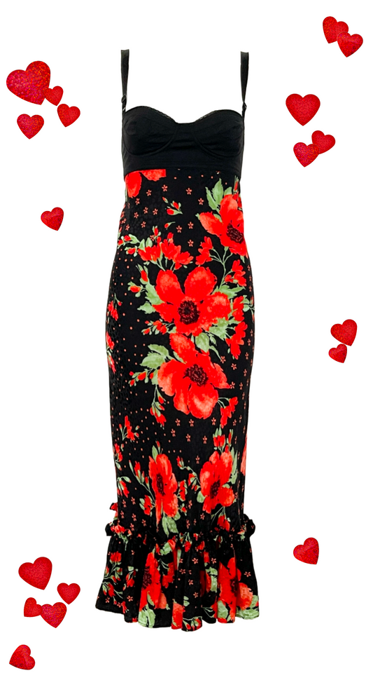Dolce & Gabbana ~ 2000s Poppy Flower Bustier Silk Dress