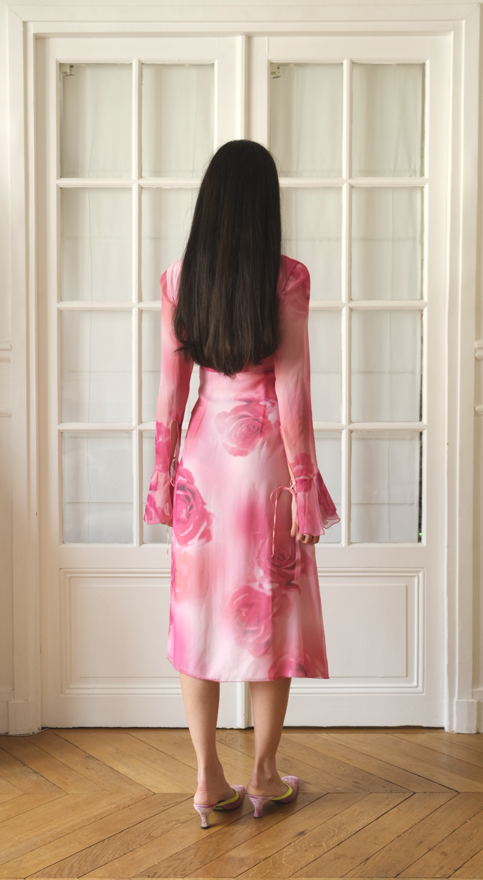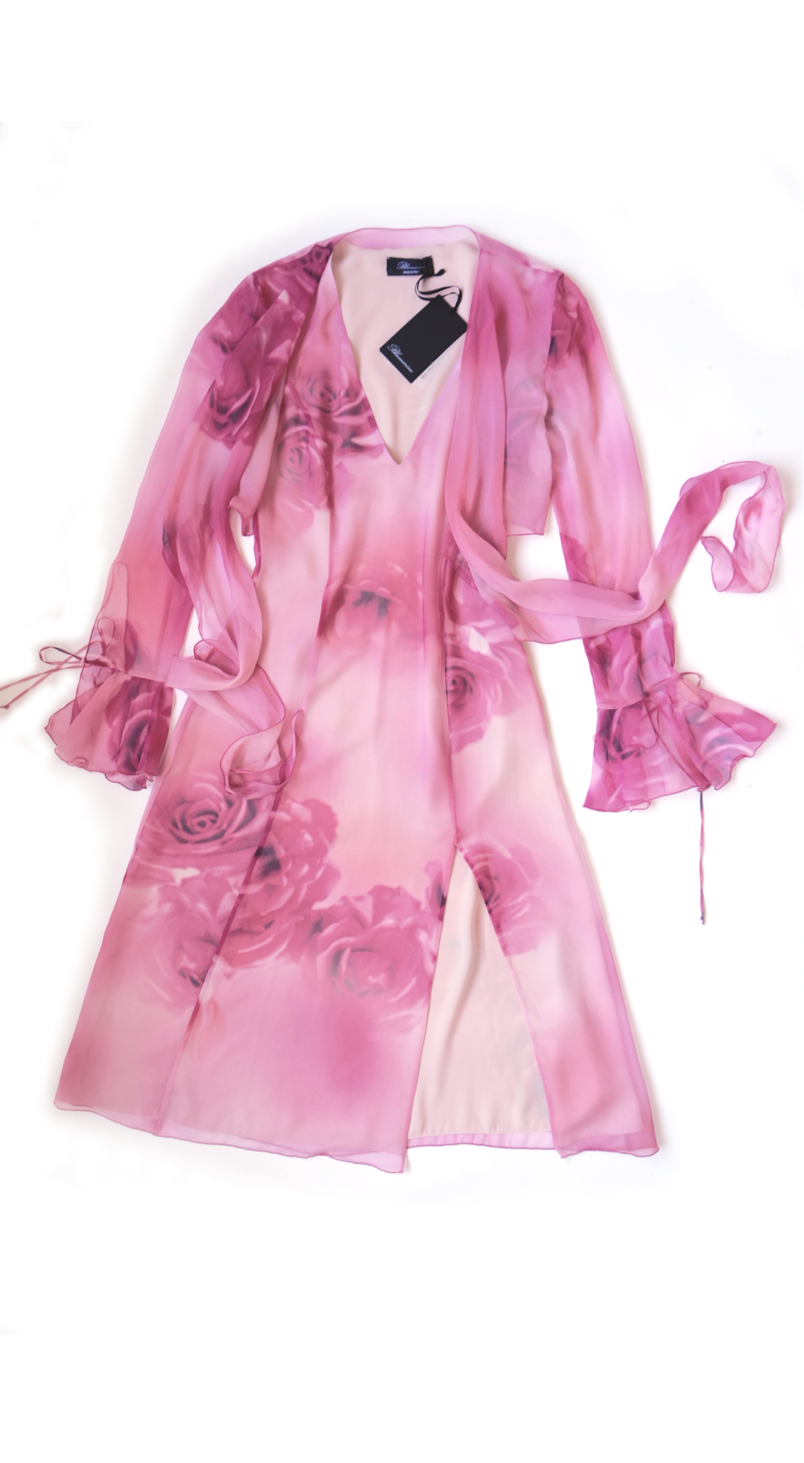 Blumarine ~ Silk Rose-Print Tie-Front Dress