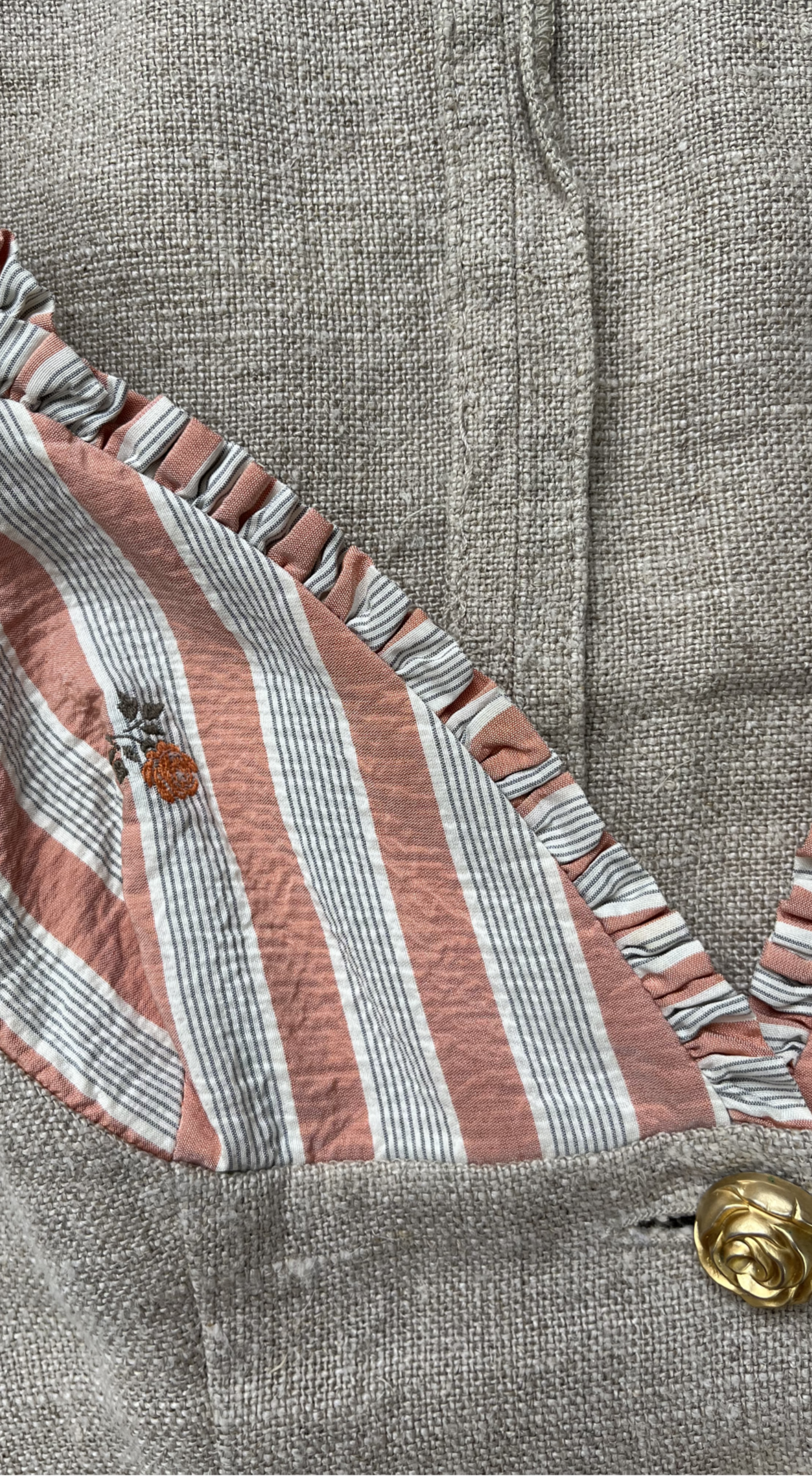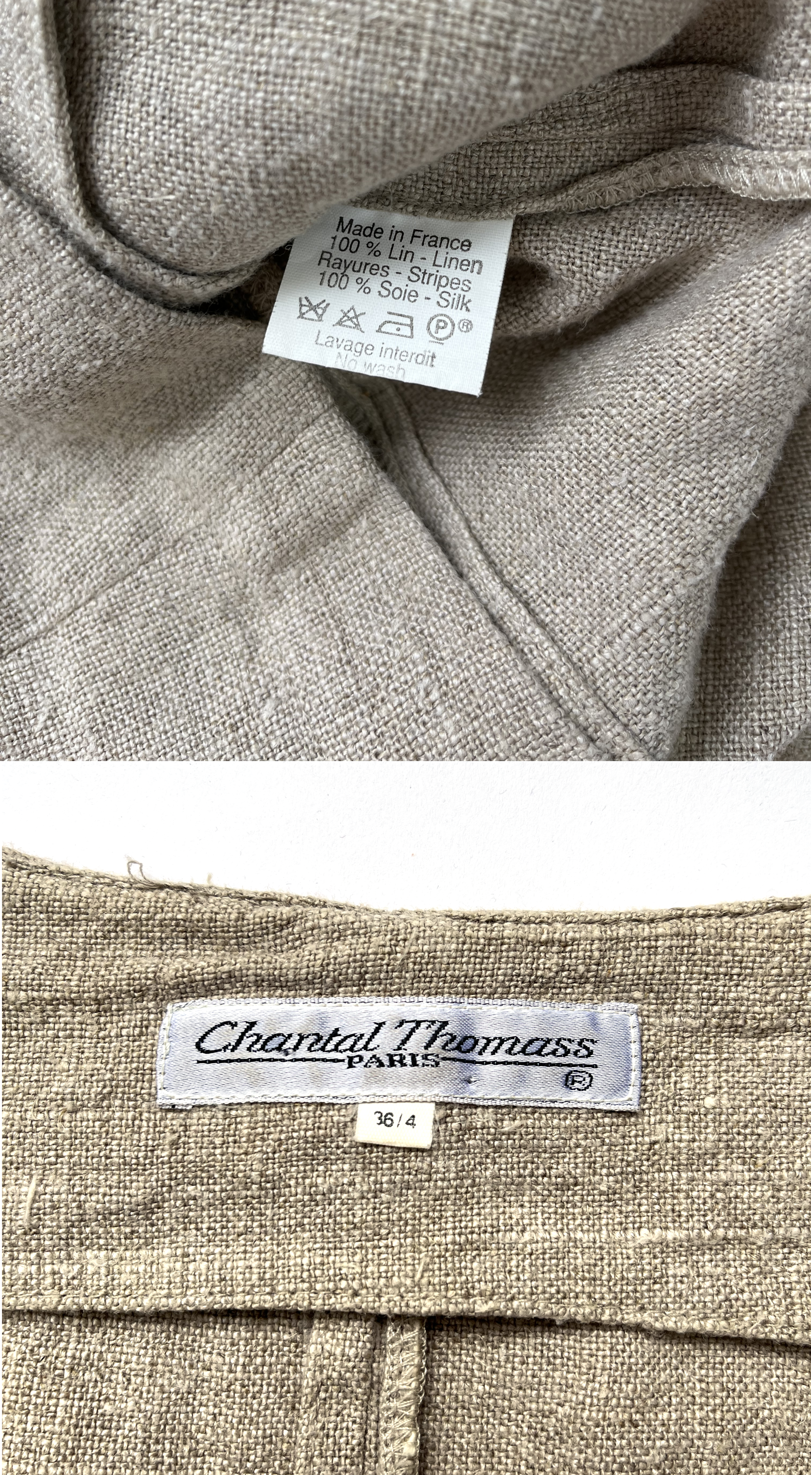 Very good vintage condition. No visible flaws. The linen has a beautiful natural texture, and the silk adds a delicate, refined contrast.