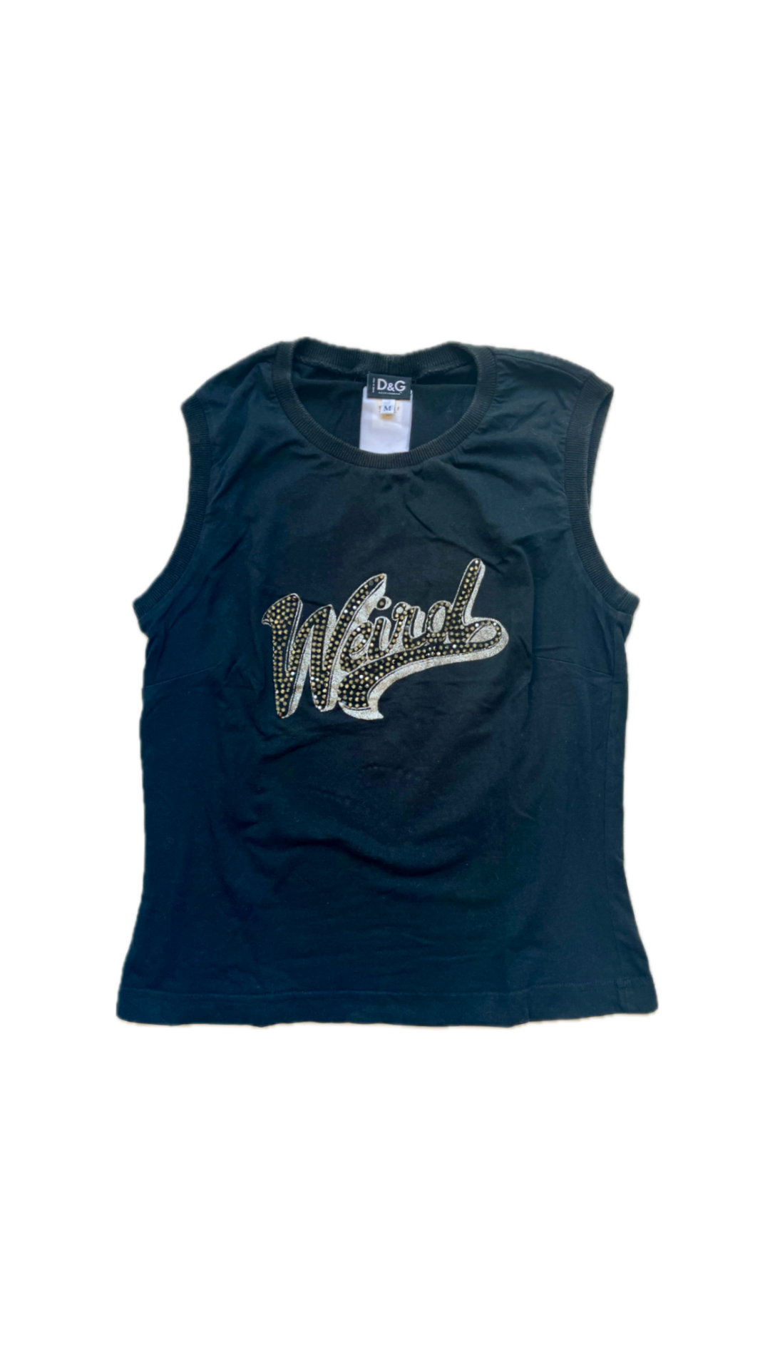 Dolce & Gabbana ~ D&G 1990s Black Rhinestone slogan Weird Tank Top