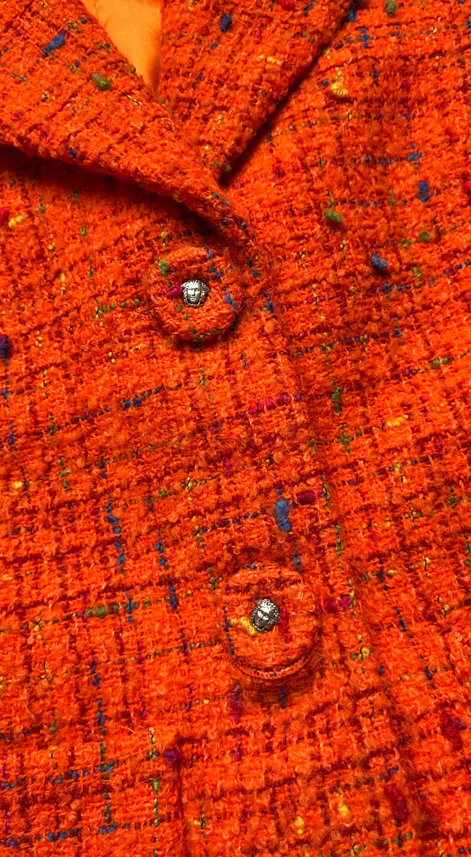 Two-piece tweed suit in brilliant orange